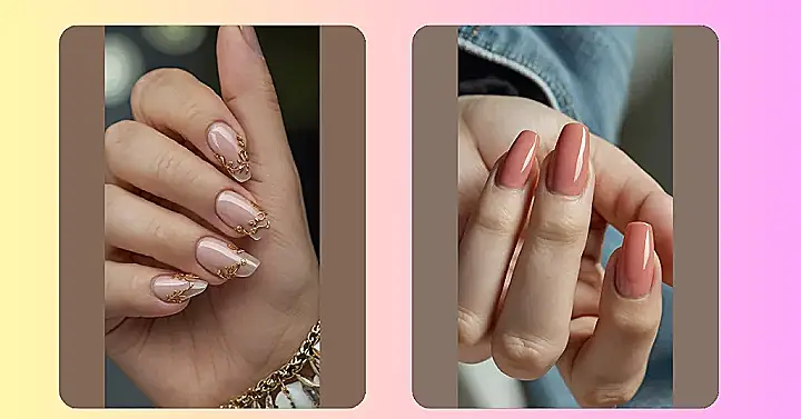 Want nails that look fancy enough for a red carpet selfie but aren’t so complicated you need a map to figure them out? Feast your eyes on this! It’s like they took a chill nude colour, sprinkled it with magic fairy dust (or tiny rhinestones, close enough!), and somehow made it look totally effortless. These nails are basically saying, “Yes, I’m elegant, but I can also totally crush my homework and not lose a single sparkle.” It’s the perfect mix of simple style and just enough shine to catch the light and make you feel like a low-key queen.