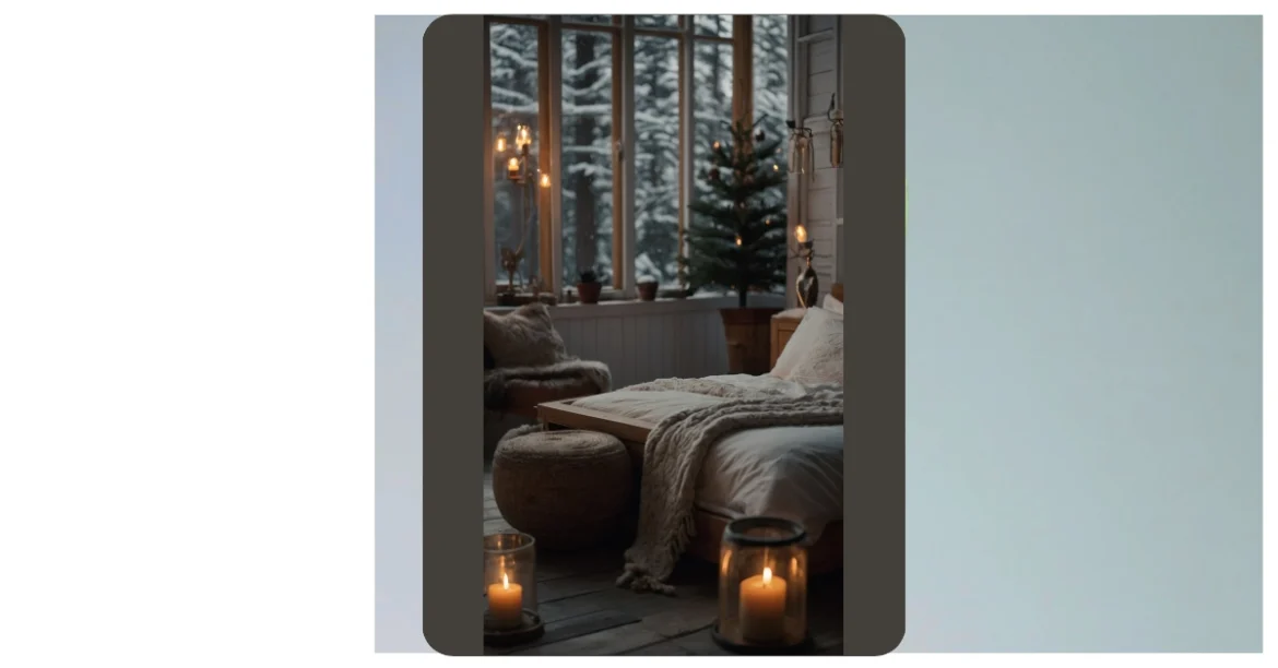 This picture makes me want to curl up in a big, comfy bed with a good book and a mug of hot cocoa! It’s like a winter wonderland in a bedroom, with fluffy blankets and pillows, warm candlelight, and a window that shows a snowy scene outside.