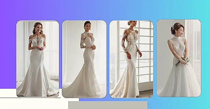 Seriously, this dress is giving me major bridal goals. The long sleeves add a touch of mystery, while the fitted silhouette shows off your figure in the best way possible. Plus, that train! It’s long enough to make a grand entrance, but not so long you have to worry about tripping and ruining your big day (unless, of course, you’re going for a dramatic ‘trip and fall’ moment, which, let’s be real, would be totally memorable!).