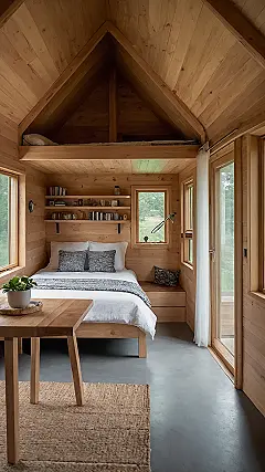 Stepping into a micro house like the cool wooden one in the picture feels a bit like stepping into a life-sized dollhouse, but way more awesome and probably with better Wi-Fi. It’s got that super cool pointy A-frame roof and giant windows, probably so you can see the trees towering over you and remember why you don’t need three different living rooms. Just try not to trip over your own feet; in a place this size, every square inch is prime real estate, so multitasking means cooking dinner while also doing laundry and maybe petting the cat, all without moving more than two steps.