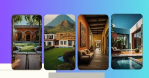 And talk about an upgrade! Peek inside through those stunning glass walls, and you’ll spot a living room ready for epic movie nights and a kitchen that looks like it belongs on a cooking show. But the party doesn’t stop indoors. Step onto that fancy patio with its cool outdoor furniture and a fire pit that’s definitely more s’mores than stable. This house proves that you can have the rustic charm of a barn without the smell of… well, a barn. It’s perfect for chilling with friends, maybe even pretending you’re a super cool architect living in the future, all while enjoying that awesome outdoor vibe.
