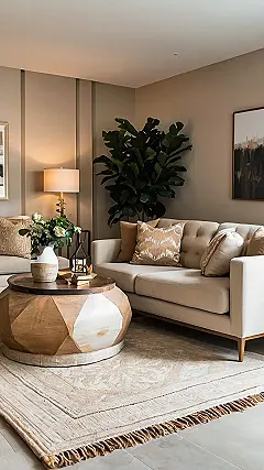 So, picture this: you’ve had a long day at school, maybe aced that history test (or at least survived it!), and all you want to do is collapse onto a comfy couch. Well, this room is practically begging you to come and Netflix and chill. Everything’s in these super calming beige tones, like a giant hug for your eyes. Even the plant looks relaxed! It’s like the whole room decided to coordinate for ultimate relaxation.