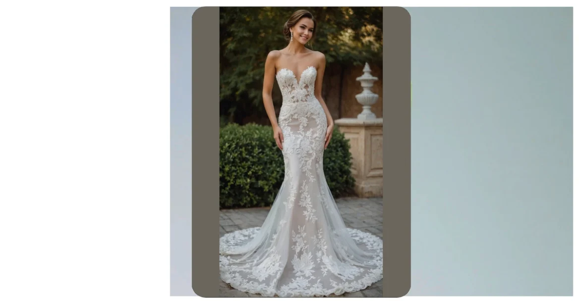 Check out this absolutely stunning wedding dress! It’s got all the glam, from the intricate lace that looks like it was painted right onto the sheer fabric to that super elegant deep V-neck. This mermaid style hugs your figure just right, giving you that ‘I woke up like this, totally ready to float down the aisle’ kind of vibe. It’s like the dress itself is whispering, “Go on, girl, shine bright!” and making sure you look like you just stepped out of a fairytale, but with way more style and a killer smile.