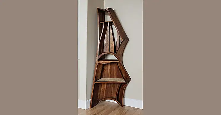 Seriously, the shape is wild! It’s like a wooden wave crashed into a corner and decided to stay. Perfect for a bedroom or even a living room, this shelf is not just storage, it’s a statement piece. It’s a conversation starter, and I bet everyone who sees it will want one too! You could even put plants on it—it’s practically designed to make your home a little wilder and more interesting. Think of all the stylish wooden trinkets you could put there. It’s all about showcasing your personality, one beautifully carved item at a time.