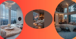 The earthy tones and wooden furniture make you feel like you’re glamping in style. And did you see those random circles on the wall? Are those tiny portals to the forest? Maybe they’re secret squirrel entrances! This room is basically saying, “Come on in, relax, and maybe learn how to photosynthesize!”