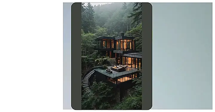 This isn’t just a house; it’s a sleek, glass-encased masterpiece that decided to play hide-and-seek in the middle of a misty forest. With more windows than a shopping mall, you’d practically be living outdoors, just with much better Wi-Fi (hopefully!). It looks like the kind of forest mansion where you’d spend your mornings sipping fancy juice, wondering if that rustling in the bushes is a rare bird or just your sibling trying to sneak a snack from the kitchen. Forget having nosy neighbors; your biggest concern would be remembering where you parked your car on that winding, tree-lined road.
