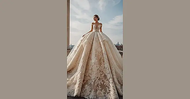Slipping into a gown like this would make anyone feel like they’re about to walk into the most important ball of the century, not just a wedding! With all that fabric and the stunning lace, it’s less a dress and more a wearable work of art that probably took more effort than your last few history projects combined. It perfectly captures that over-the-top, beautiful vibe linked to the rococo style, where more was definitely more. This dress isn’t just for walking down an aisle; it’s for making a grand entrance that people will talk about forever, maybe even while trying not to trip over all that gorgeous skirt!