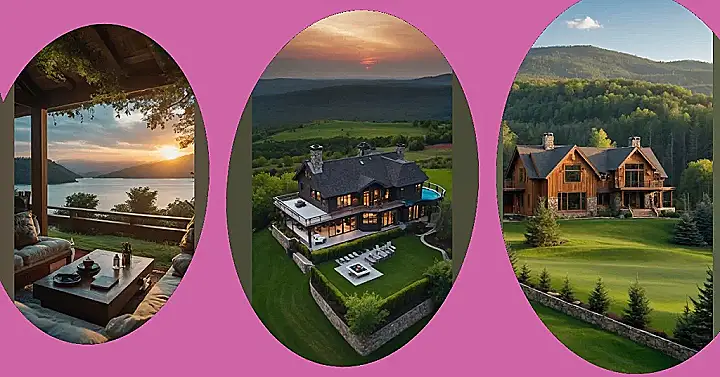 This house is like something out of a magazine! It sits on a hilltop overlooking a whole valley, with a view that makes you feel like you’re on top of the world. Just imagine waking up to that sunrise every morning! It’s got a pool, a fireplace, a giant deck… it’s like the perfect spot for a party, or just chilling out and enjoying the peace and quiet. This house is definitely a dream come true, especially if you love nature!