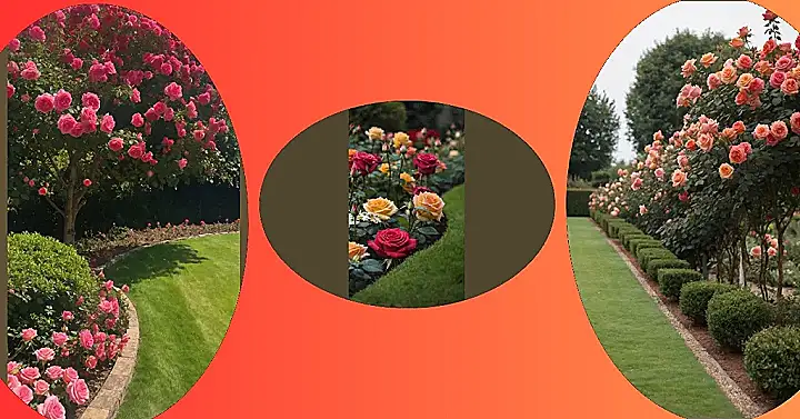 Check out these awesome roses in the picture – those deep reds, cheerful yellows, and warm peachy shades are practically glowing! If your front yard transformed into this kind of rose garden landscape, it wouldn’t just be a lawn; it would be a superstar, making every delivery driver and visitor stop and stare. Your house would basically be giving off “coolest on the block” vibes, with all these vibrant petals saying a big, colorful hello. Forget plain greenery when you can have a full-on floral concert right outside your door!