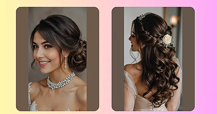 Bridesmaids, this one’s for you as well! Your ensemble has to complement the lehenga bride’s sparkle without dimming it, right? Consider easy styles like a half-up style or an elaborately twisted bun that matches her lehenga. And let’s not forget those radiant ladies dressed in the Lehenga kerala – floral hairpieces can take your style to a new level!