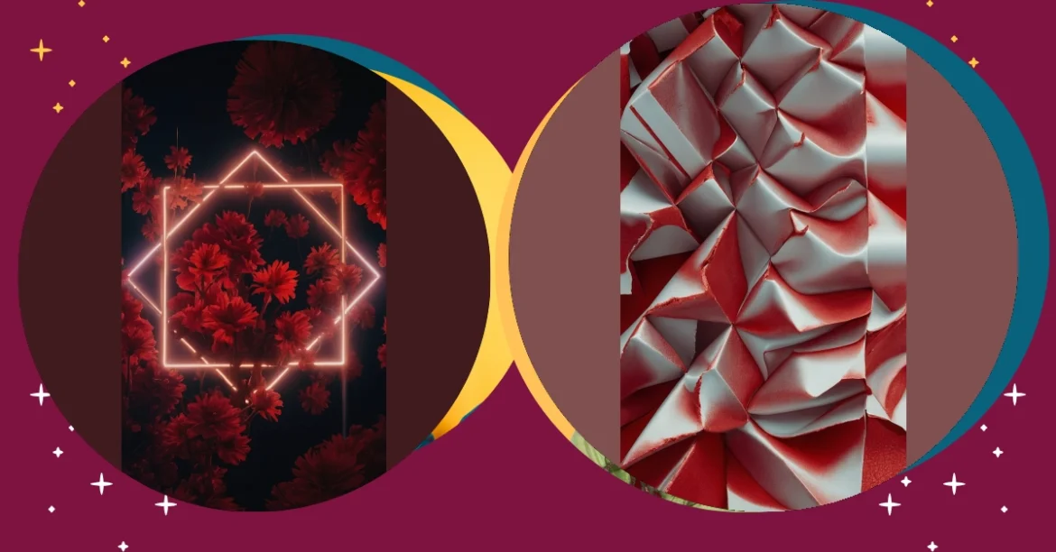 Imagine a secret garden at night, but instead of fireflies, it’s glowing neon lines creating a super cool geometric frame around a bunch of vibrant red flowers. It’s like someone took a red wallpaper print and decided to make it three-dimensional, adding a touch of futuristic magic. The flowers themselves look like they’re bursting with energy, almost like they’re ready to light up the whole night sky with their intense red color! It’s the perfect backdrop for a cool, mysterious photoshoot – maybe for a band’s album cover?