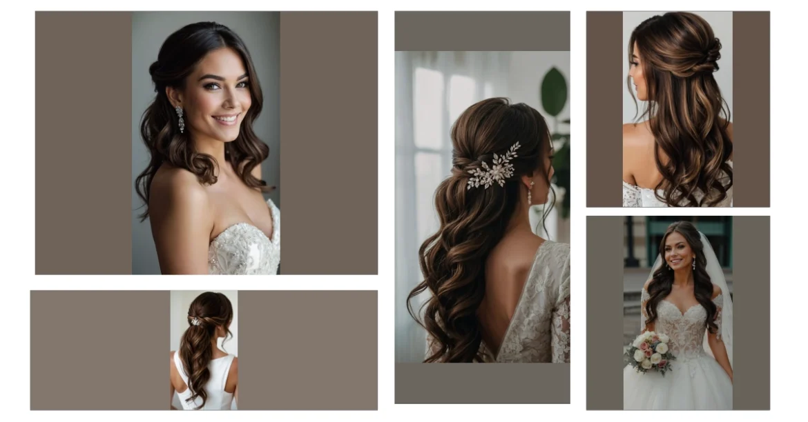 Imagine all the possibilities! You could go totally romantic with loose curls and a delicate flower crown, or edgy with sleek waves and a bold, geometric hair clip. Maybe you want a super sophisticated updo on top and a waterfall of curls tumbling down—this style lets you mix and match for something totally unique. Plus, half-up, half-down is super comfy, so you can dance the night away without constantly fussing with your hair—meaning more time for cake, and honestly, that’s the most important part of any wedding.