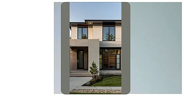 Seriously, look at that walkway! Those perfectly placed stone slabs leading up to the front door are practically begging you to walk on them, like a runway to your awesome modern American home. The dark roof and windows add just the right amount of edgy contrast to the bright white walls. This place isn’t just a house, it’s a vibe – super chic, effortlessly cool, and totally Instagram-worthy. I bet even your grandma would approve… although she might ask if you’re sure you don’t want a porch swing!