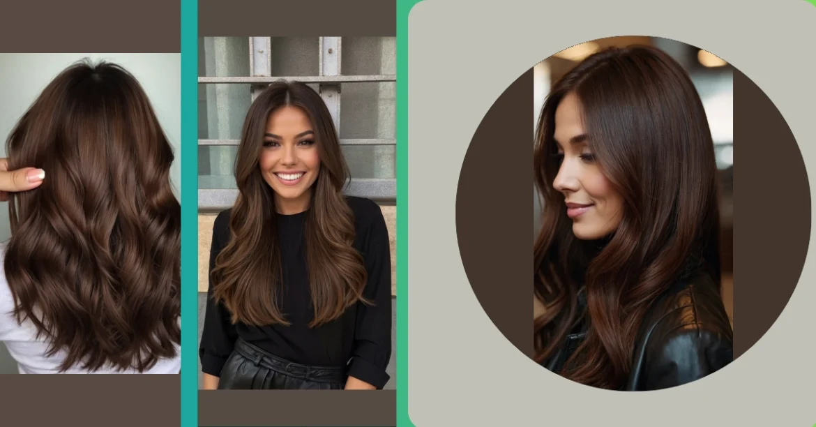 Wow, check out those luscious locks! This isn’t just any brown hair; it’s “rich dark chocolate brown hair” – the kind that makes you want to reach out and grab a bite (just kidding…mostly!). Imagine the smell of freshly baked brownies mingling with the scent of a fancy salon – that’s the vibe this hairstyle gives off. It’s like a chocolate waterfall cascading down and honestly, who wouldn’t want that? Seriously, those waves are amazing; they’re like perfectly sculpted chocolate curls.