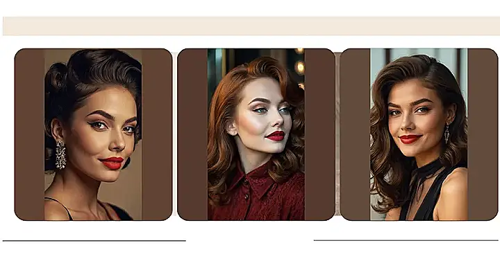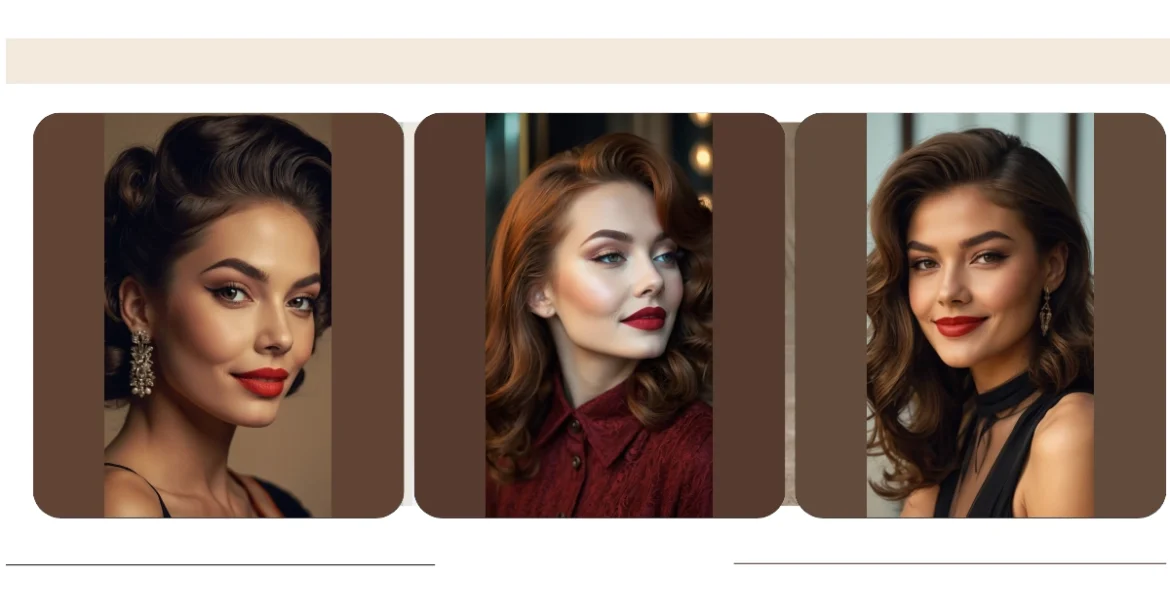 This picture is all about vintage hairstyles—the kind your grandma might have rocked back in the day! See that gorgeous model? She’s got medium-length hair styled in a way that’s both super sophisticated and totally fun. It’s like a classic Hollywood movie star came to life, ready to steal the show at a prom or even just a fancy pizza night with your friends. It’s the perfect blend of old-school glamour and modern coolness, proving that some things never really go out of style.