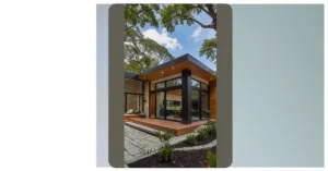 And get this – that’s not just a plain old front stoop, it’s a mini-stairway to heaven (or at least, to a really cool front door)! And look at that little reflecting pool – perfect for admiring your own reflection after you’ve given the house a proper ‘wow’ moment. It’s like a mini-palace for a modern-day king or queen (or maybe a super cool family who appreciates good architecture!).