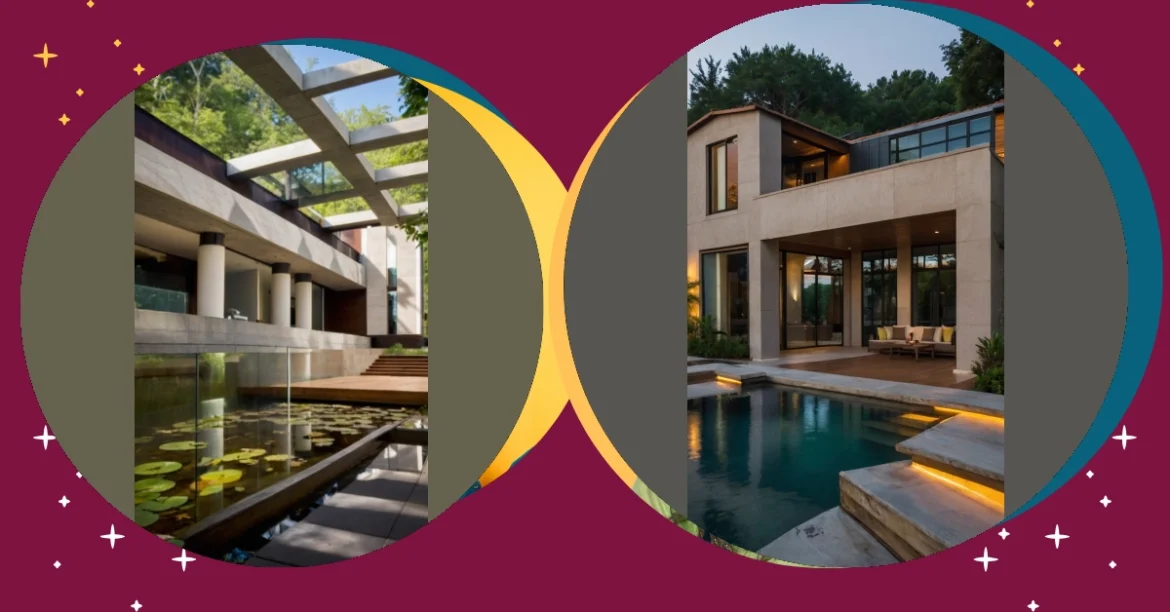 Imagine this: you’re lounging by a sparkling pool, the sun dappling through the leaves of a giant tree that’s practically hugging the house. It’s like something out of a peaceful dream, right? This isn’t some faraway fantasy; it’s “serene architecture” in action! This design brings the calm of nature inside, making even a modern house feel like a cozy forest retreat. You can almost hear the gentle whisper of the wind and feel the stress melting away. It’s the perfect spot for a summer day dream!