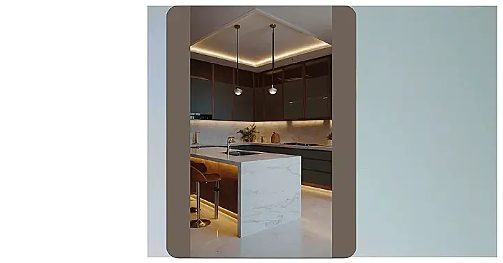 This kitchen is seriously stylish! Imagine yourself whipping up some amazing snacks, maybe even a fancy charcuterie board, in this gorgeous space. The marble countertop is like, the star of the show—so sleek and modern. It’s giving me major home decor inspiration, especially for anyone who loves a touch of luxury mixed with super clean lines. Those pendant lights are pretty awesome too – they add that perfect amount of glow without being too over the top. The whole vibe is super chill and sophisticated – definitely Instagram-worthy!