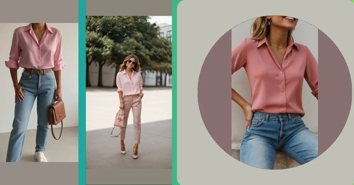 Forget the boring old t-shirt! This outfit screams sophistication without trying too hard. It’s a great example of how a simple, beautiful shirt can be dressed up or down. You could totally dress this up with some cute heels and jewelry for a night out, or keep it casual with sneakers for a day of exploring. Seriously, the versatility of this rose pink shirt and jeans combination is unmatched! It’s like a magical wardrobe staple that can make you look amazing for any occasion.