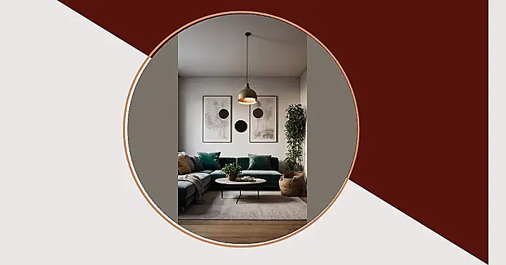 This living room is so minimalist, it’s practically begging you to trip over its stylish simplicity! Imagine: You walk in, and BAM! A gorgeous emerald green sofa dominates the space, like a sophisticated, leafy jungle creature relaxing after a long day. The artwork above is all moody greys and mysterious black circles – it’s like a secret code only cool people can decipher (and maybe some grade 9 art students!). It’s got that “I only own what I need” vibe, yet it still manages to look super comfy and cool. The single, elegant light fixture? Pure perfection.