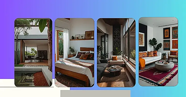The earthy tones of the wood furniture and the serene colours of the plants create a truly peaceful vibe. This design shows that modern Mexican decor isn’t just about bright colours and bold patterns; it’s about finding a balance between nature and contemporary style. It’s a sophisticated look that’s still super comfortable and fun—perfect for enjoying a sunset with a margarita (if you’re old enough, that is!). The whole scene screams “relax and enjoy the good life,” which is pretty much the best kind of home decor anyone could ask for.