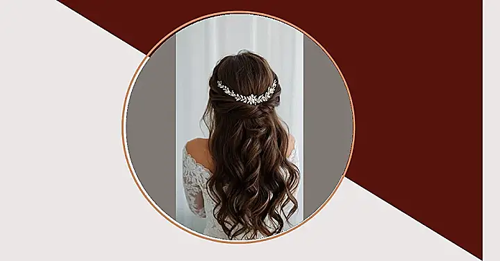 It’s not just beautiful; it’s also super versatile! You could totally rock this look with a simple dress or a super fancy gown. The delicate crown adds a touch of magic, but the overall style is still super relaxed and romantic. Plus, those curls? They’re like the ultimate head-turner! It’s the kind of hairstyle that makes you feel confident and stunning, ready to say “I do” to your happily ever after. So, ditch the updo stress and go for this half-up, half-down dreamy style!