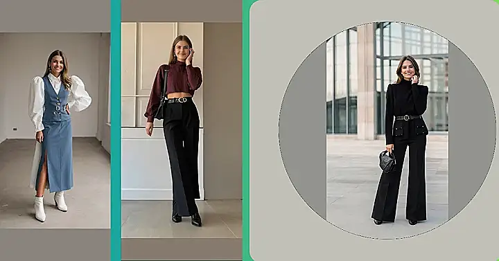 This woman’s outfit is so sleek, it could practically walk the runway in London Fashion Week! That all-black power suit is seriously stylish – imagine strutting down the street in this, feeling like a total boss. It’s the perfect blend of sophisticated and effortlessly cool. She’s rocking those wide-leg trousers like a pro, and that little black handbag adds the perfect finishing touch, proving you don’t need a million colors to make a statement. It’s like a modern take on classic London fashion for women who are ready to conquer the world (or at least, a killer presentation at school).