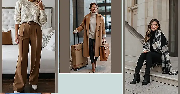 This picture is pure winter fashion inspo! Imagine strolling through a stylish airport, ready for a snowy getaway, looking this effortlessly cool. That camel-colored coat is majorly cozy and chic, perfect for keeping warm while still looking like you stepped out of a fashion magazine. The matching luggage just adds to the sophisticated vibe – you’ll be the most fashionable person on the plane, guaranteed!