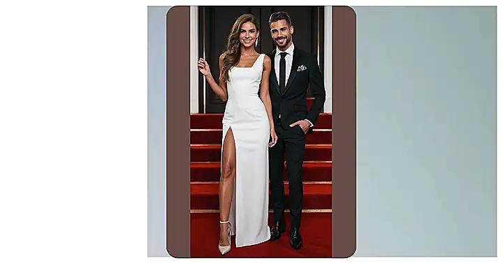 Forget the ugly Christmas sweater; this dynamic duo proves that a little black tie and a seriously stylish white dress are the ultimate couple goals for any Christmas party. They’re so coordinated, it’s like they planned their outfits with a secret decoder ring. Honestly, they are ready to make a holiday entrance that’ll have everyone saying, “Wow, they’re bringing the fashion sleigh this year!”.