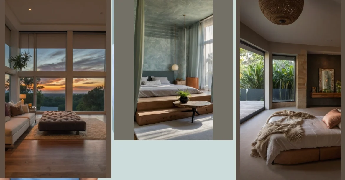 Imagine this: you’re snuggled on a comfy ottoman, gazing out at a breathtaking sunset painting the sky in fiery oranges and soft pinks. That’s exactly the kind of relaxing vibe you can create in your bedroom, turning it into your own personal chill-out zone. This picture shows just how amazing it can be—a whole wall of windows offering front-row seats to nature’s nightly show. Forget counting sheep; you’ll be counting sunsets!