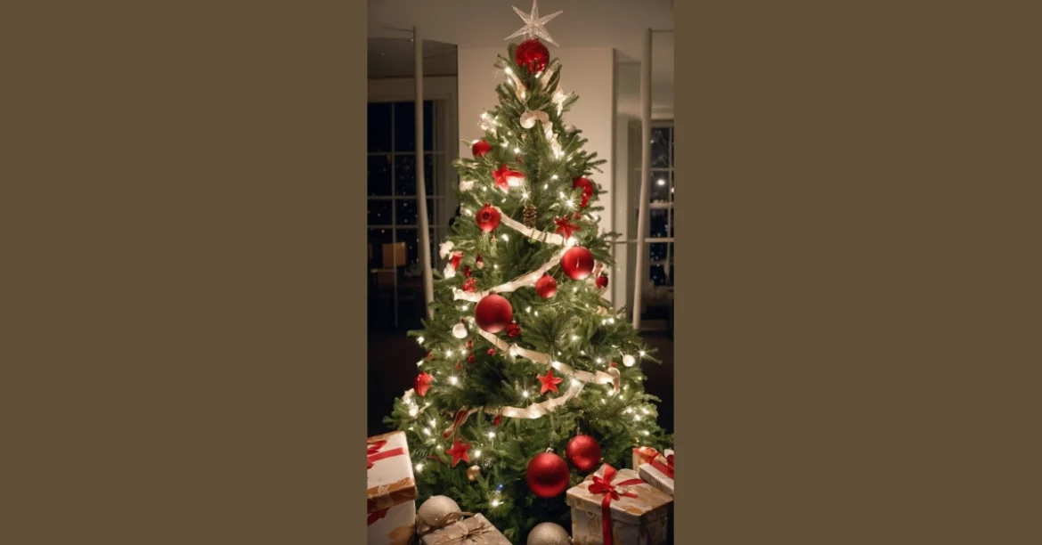 But the best part? This picture gives you tons of Christmas tree inspiration! You could totally copy the warm, cozy vibe, with the lights and the star on top. Or maybe you’re feeling extra creative and want to try a different color scheme or add some unique ornaments. Whatever you decide, make sure it reflects your personality and makes you smile – because that’s what Christmas is all about!