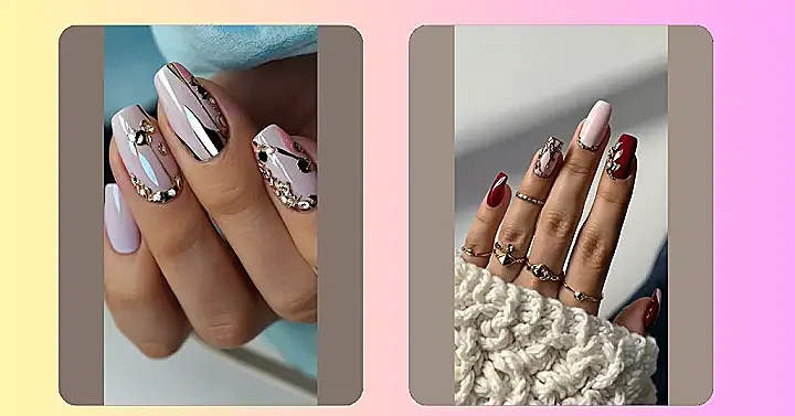 These nails are so fancy, they practically require a red carpet! Look at those gorgeous colors and sparkly details – it’s like a mini jewelry collection on your fingertips. Forget simple; these are seriously *statement* nails. They’re perfect for showing off your amazing rings too, proving that sometimes a little bit of extra bling is exactly what you need to upgrade your everyday look. Who needs diamonds when you’ve got this?