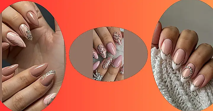 These almond nails are seriously next-level! Look at those gorgeous, subtle nude shades – they’re like the perfect neutral canvas, ready for anything. Then, BAM! Some nails get fancy details, like delicate gold swirls and sparkly gems. It’s like the nail version of a simple outfit with a statement piece of jewelry; effortlessly chic! You could rock these for a fancy dinner or just chilling with friends—they’re versatile enough to handle it all.