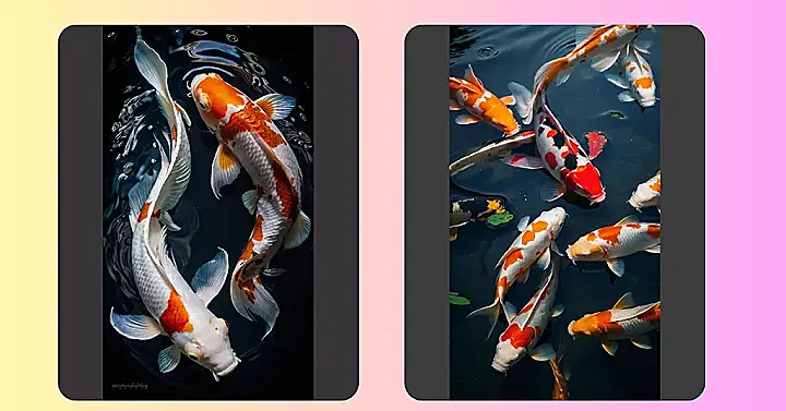 It’s amazing how much personality these fish have. One looks super chill, gliding through the water, while the other seems a bit more curious, maybe wondering what tasty treats might be lurking nearby. Their fins are so elegant, it’s like they’re dancing underwater! Maybe they’re competing to see who can make the most mesmerizing ripples in the pond. It’s the kind of picture that makes you want to dive right in and join their underwater party.