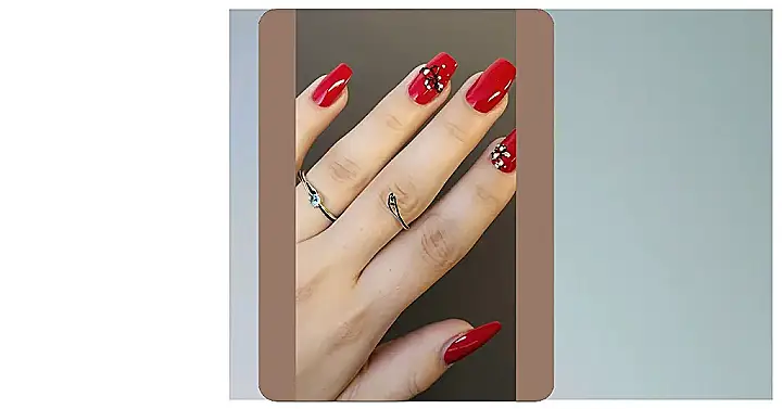 These nails are seriously stunning! Imagine rocking these crimson-red beauties, complete with their delicate silver heart-like accents. They’re like tiny works of art on your fingertips – perfect for Valentine’s Day, a fancy date, or just because you deserve to feel extra fabulous. It’s like wearing a little bit of love on your hands, even if it’s just the amazing nail polish itself! Plus, it’s way more fun than drawing hearts on your homework.