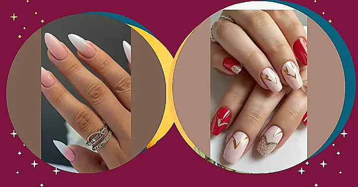 These nails are seriously cute! Imagine combining your favorite candy (red!) with the fanciest gold jewelry you can find. That’s exactly what this design does! The sparkling bits and gold accents add a super chic vibe to the classic red nail, and those little V-shapes are totally on trend. They’re the kind of nails that would make even your math teacher do a double-take (in a good way, of course!).