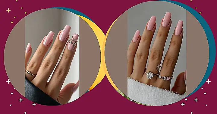 Seriously, who wouldn’t want to show off this amazing manicure? Between the elegant pink polish and those gorgeous rings, this hand is seriously owning the accessory game. It’s like a tiny, glamorous work of art. Imagine walking around, knowing your fingers are this dazzling – you’d practically be floating on air! And the best part? This style is super chic, but also comfortable enough for everyday wear. Who needs fancy gowns when you have nails this amazing?