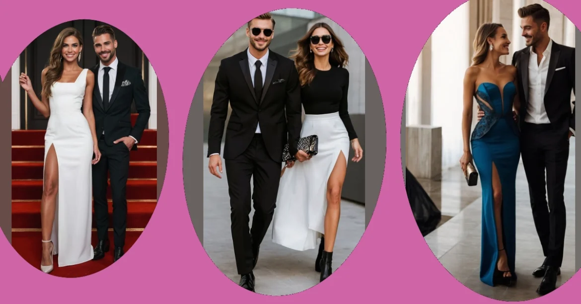 Just imagine rolling into the party, dressed to the nines in coordinating outfits that scream ‘fashion goals.’ Picture it: you in a sleek formal dress and your partner matching that aesthetic while throwing in a touch of humor, like fun accessories or quirky ties. Now that’s a vibe! It’s all about blending those dressy elements with a dash of personality, making a statement while chuckling about an inside joke.