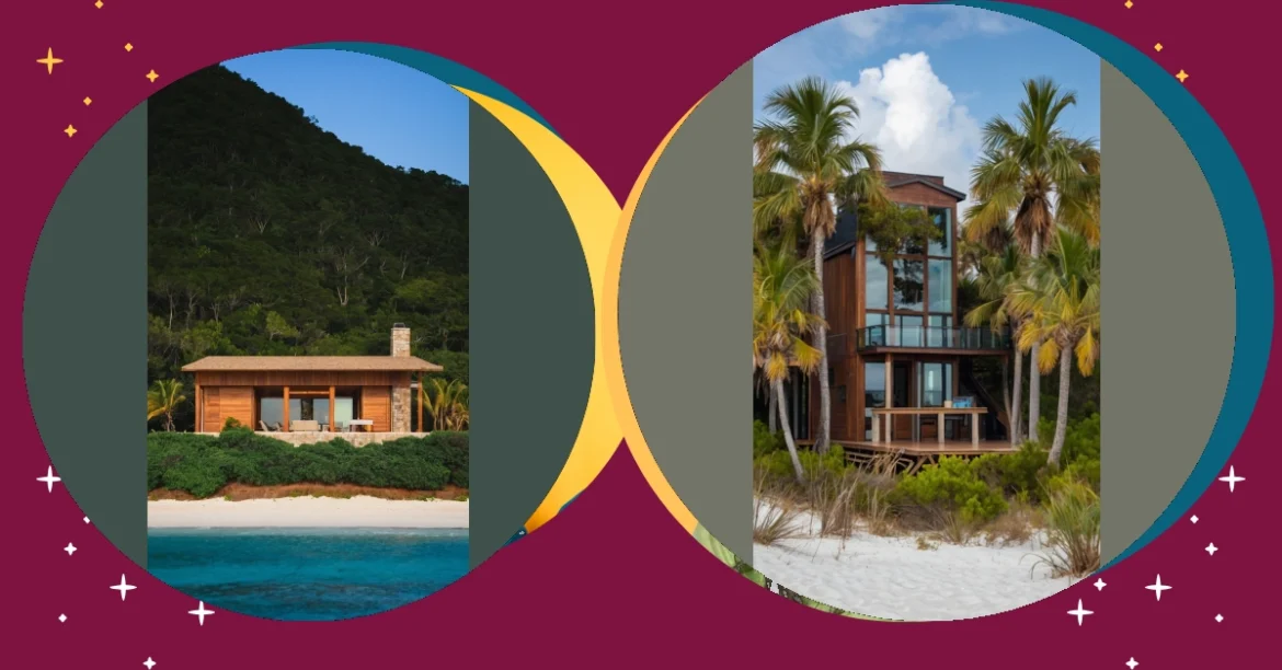 But wait, there’s more! This isn’t just any beach house; this is YOUR private beach house! Forget sharing your sandcastle-building space – this is your personal paradise, complete with a ridiculously awesome view, a super-stylish house, and seating that’s so cool, you’ll probably want to take a nap on one of the stumps. Who needs a fancy lounge chair when you’ve got nature’s comfy seating arrangement? It’s like a fairy tale come true – only the fairy is a super-chill beach bum with impeccable taste.