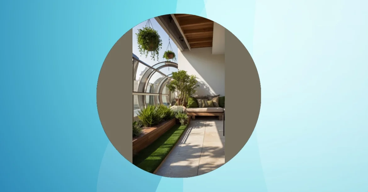 Seriously, this terrace is goals! The curved windows add a cool, futuristic vibe, while the wooden elements keep things cozy and natural. The mix of plants adds some serious life to the space, making it feel lush and inviting. It proves that you don’t need a huge backyard to have a killer outdoor spot—a well-designed terrace is all you need to create your own little outdoor oasis. Plus, imagine having breakfast out here! Pure bliss.