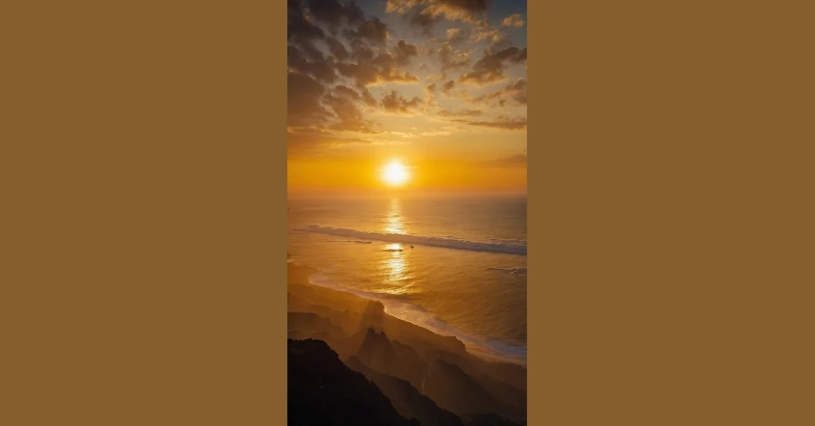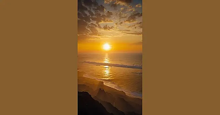 Seriously, this scene is way more exciting than watching paint dry. It’s like nature threw a spectacular party, with golden clouds as the confetti, the ocean as the dance floor, and the sun as the ultimate DJ spinning its rays. It makes you wonder what kind of magical creatures live down there, basking in the afterglow. Maybe they have tiny golden seashells, or wear sunglasses that never come off. You’d definitely want this gorgeous sunset on your phone background or even better, printed on your wall so you can see it every day!