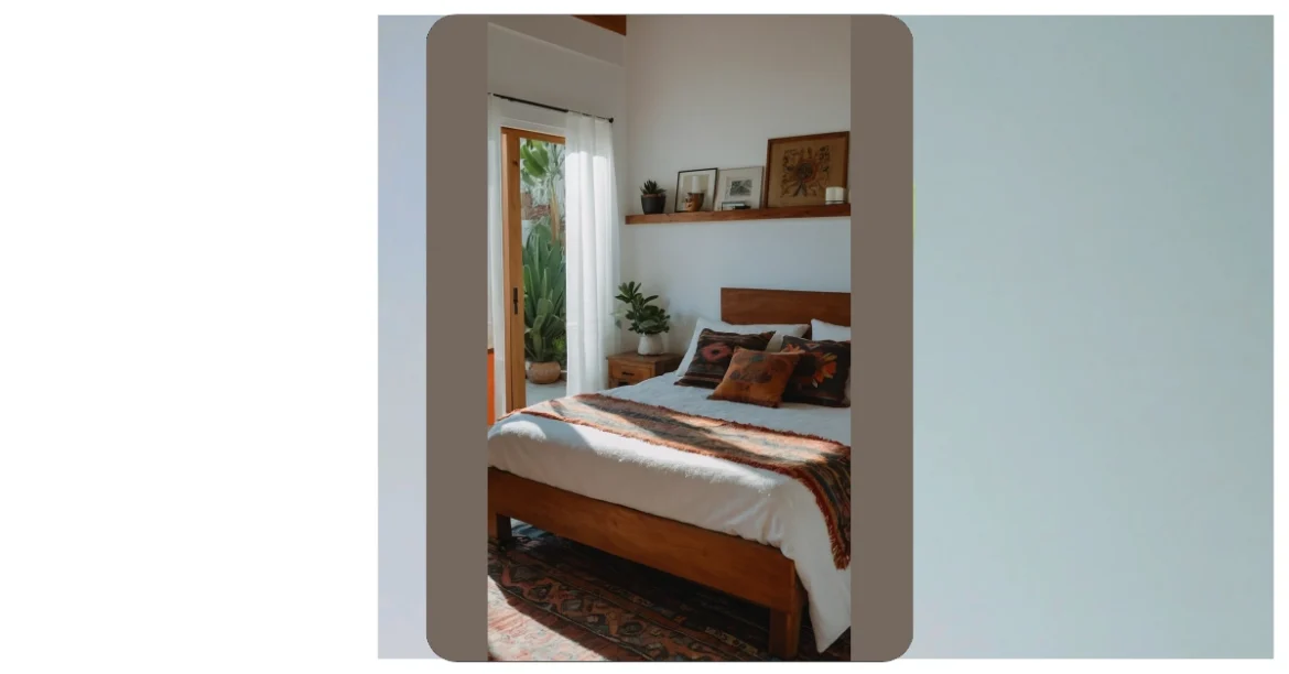 This bedroom is like stepping into a sun-drenched Mexican villa! The warm wooden bed, cozy blankets, and those amazing pillows – it’s all so inviting, you’d practically fall asleep before you even reach the sheets. It’s got that perfect blend of modern comfort and traditional Mexican vibes, like your grandma’s amazing hand-woven blanket got a super chic makeover. Seriously, just imagine waking up here every morning!