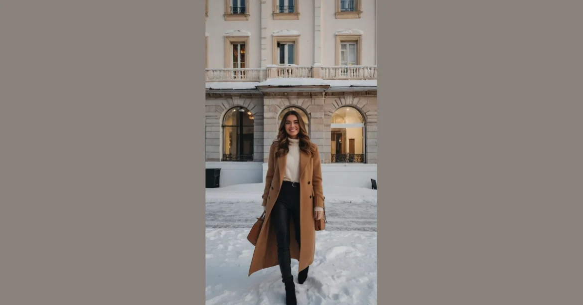 This picture screams “winter fashion inspo”! That camel-colored coat is totally dreamy – it’s like a hug you can wear, perfect for battling those chilly winter winds. I bet it’s super cozy inside, and the outfit looks so stylish; it’s giving off serious “I accidentally stumbled into a fashion magazine photoshoot” vibes! Pair that coat with some sleek black pants and a cream turtleneck, and you’re ready to conquer the snowdrifts (or just impress everyone at the mall).