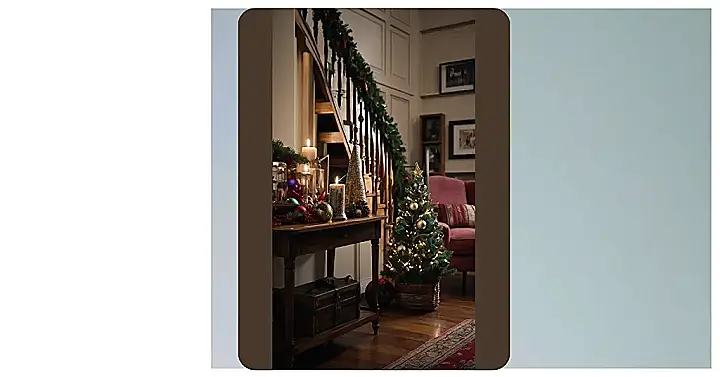 This picture is pure Christmas magic! Imagine strolling down these elegant white stairs, all decked out with a gorgeous garland of sparkly lights and festive red ornaments. It’s like something out of a Christmas movie – super fancy and totally festive. Those presents under the tree are just adding to the wow factor! This is classic Christmas decor at its finest – elegant, sparkly, and undeniably Christmas-y!