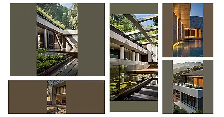 Imagine this: you’re chilling in a super-calm house, surrounded by nature but still totally modern. That’s what “serene architecture” is all about! This house is like a peaceful escape—all clean lines, concrete beams that look like they’re floating, and even a little lily pad pond inside! It’s less “cluttered attic” and more “zen garden,” you know? It probably smells like fresh-cut grass and maybe a hint of expensive soap.