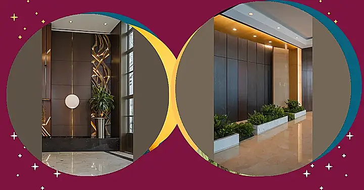 That gorgeous marble wall and the sleek wooden accents are total goals for anyone into lobby decor! The lighting is just perfect—not too bright, not too dim. It’s that Goldilocks zone of illumination, creating a peaceful and calming vibe. Plus, that logo? It’s super classy, like a secret code only cool people understand. Seriously, who wouldn’t want to chill out in this space? It makes waiting feel less like…well, waiting, and more like relaxing in style.