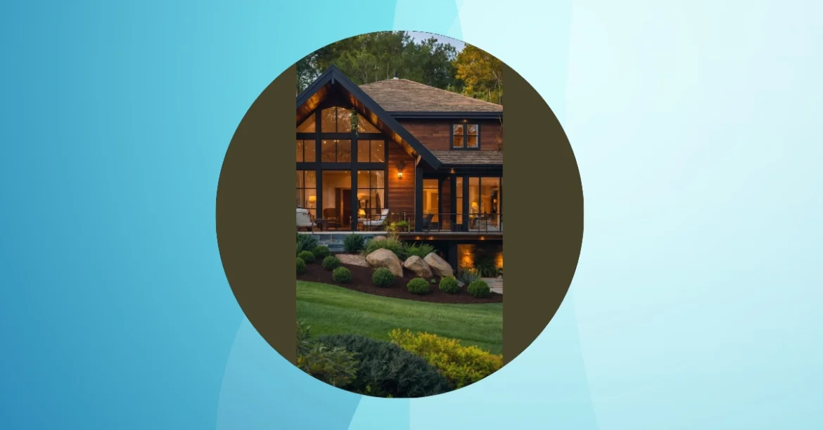 Everything about this place screams “cozy movie night.” Picture yourself curled up on a comfy couch inside, sipping hot cocoa while the rain gently patters against that fiery red roof. And those huge windows? They’re just begging to be filled with the glow of Christmas lights during winter! It’s the kind of house you could write a story about, maybe even a spooky one considering the slightly ominous trees surrounding it. Honestly, it’s the ultimate dream house, or at least a pretty awesome place to hide from a scary movie villain!
