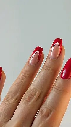 Wearing nails like these is basically letting your fingertips live their best, most dramatic life. Forget the simple white line; these red-hot french tips come with an extra sharp white V, making them look ready for a red carpet event or perhaps just really good at pointing things out in class. It’s like giving your nails a superhero cape moment, but for style instead of flying, and they definitely make a statement without you even having to say a word.
