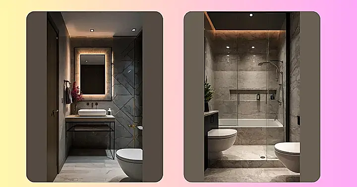 Seriously, who knew a small bathroom could be this chic? The sleek lines, the modern fixtures, and that stunning marble… it’s like stepping into a magazine spread! And forget about feeling cramped – the clever use of space and light makes it feel surprisingly spacious. Plus, can we talk about that shower? It’s the perfect place to unwind after a long day, even if your bathroom is small. It’s a tiny bathroom with a huge personality!