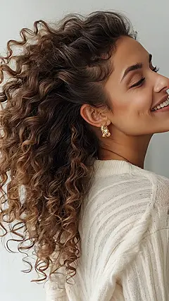 This image is all about that long, flowing, curly hair, right? It’s like a waterfall of curls! The way it’s styled in a ponytail just screams “I’m ready to take on the world, but also, maybe I’ll just twirl in my own hair for a bit.” It’s like a picture of a hair dream come true, you know? You can just imagine how soft and bouncy it must be!